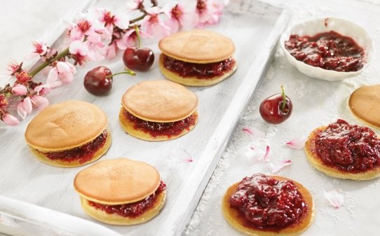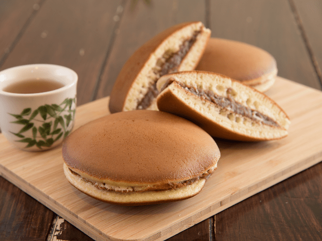 - Para montar el dorayaki, simplemente tenemos que juntar dos pancakes y rellenar el interior con yude-azuki o pasta de judías rojas endulzadas.