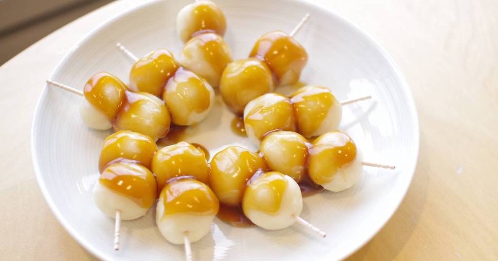 - Cuando el dango está enfriado, las sacamos del agua y las pinchamos con un palillo. Ya están listas para ponerles el topping elegido y servirlas.