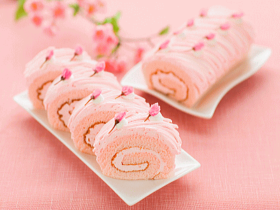 5. Retira el bizcocho del horno, coloca más papel de hornear encima y dale la vuelta para desmoldarlo fácilmente. Deja enfriar y retira el papel de hornear con mucho cuidado para no arrancar las flores. Coloca más papel de horno de nuevo por encima y vuelve a darle la vuelta. Retira el papel de hornear del lado dónde no hay diseño. Corta un poco los dos bordes en diagonal para un mejor enrollado. Haz unos pequeños cortes paralelos (unos 2-3cm entre ellos) a lo largo de todo el rollcake, poco profundos, para ayudar que al enrollarlo no se rompa.
